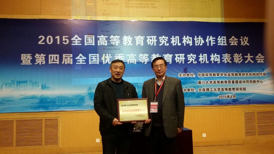 2015年4月18—19日,由中国高等教育学会高等教育研究机构协作组主办,大连理工大学高等教育研究院承办的“2015年全国高等教育研究机构协作组会议暨第四届全国优秀高等教育研究机构表彰大会”在大连举行。我校发展规划处(高教研究所)戴玉纯研究员、雷金火副研究员参加会议,接受了颁奖,领取了全国优秀高等教育研究机构奖牌。