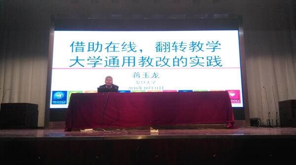 报告会上,蒋玉龙从目前本科教学中存在的问题、如何应用网络平台建设在线课程和实施翻转课堂等方面,结合自身建设在线课程和实施翻转课堂教学的过程,分享了课堂教学改革中的经验、体会和反思。报告结束后,他还就在线课程建设、翻转课堂实践中的具体问题与现场教师进行了互动交流。