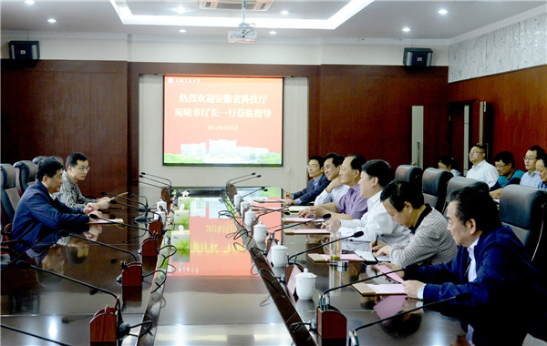 5月5日下午,安徽省科技厅厅长宛晓春一行来我校调研指导工作。在校校领导刘新跃、李家新、陈润、祖明、林钟高、张国宝、魏先文出席调研座谈会。座谈会由校党委书记刘新跃主持。