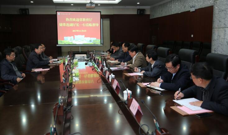 11月6日下午,省教育厅副厅长储常连到我校调研指导工作,省教育厅人事处处长李方泽、科学研究与研究生教育处处长王忠陪同调研。校党委书记刘新跃、校长李家新出席调研座谈会,会议由刘新跃主持。